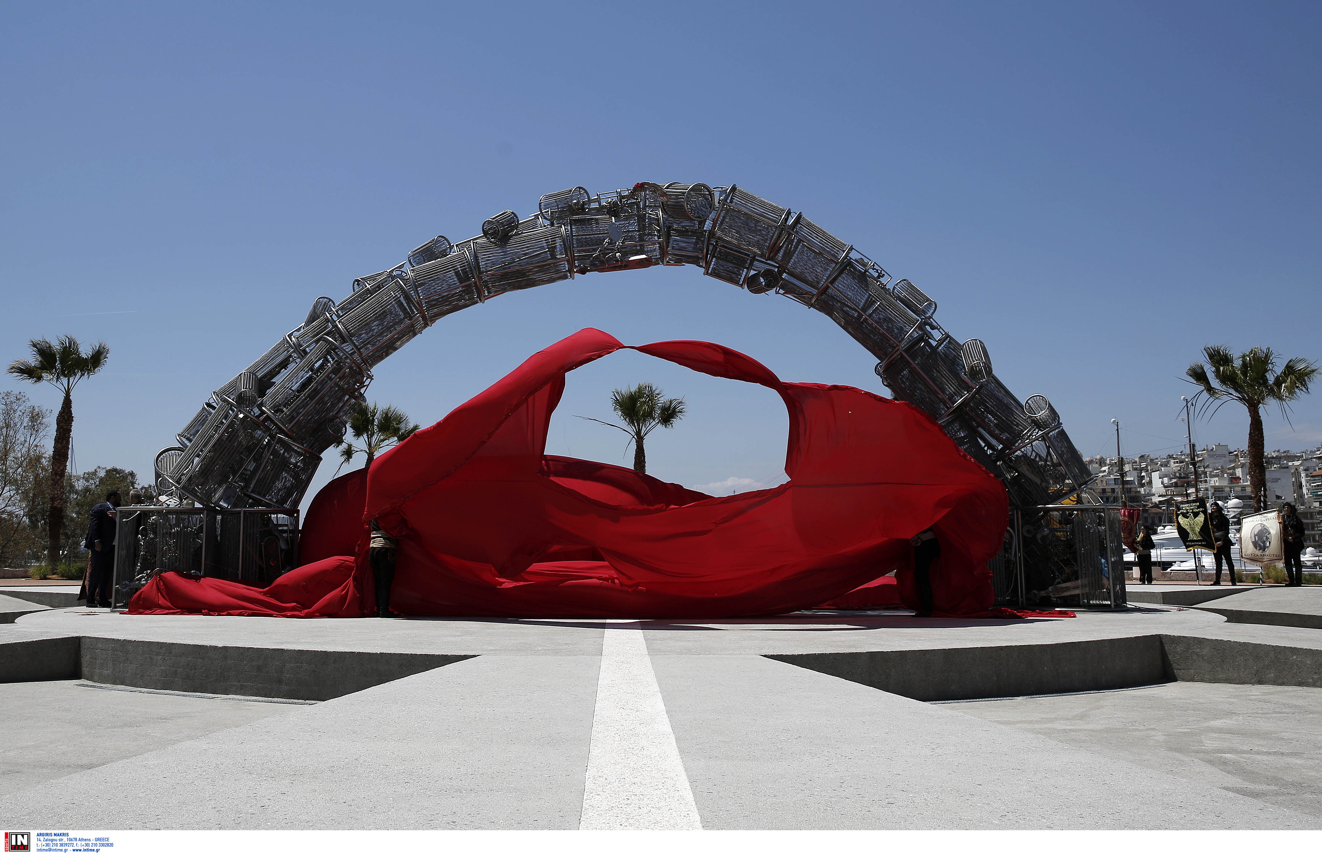 ΧΑΙΡΕΤΙΣΜΟΣ ΑΠΟ ΤΟΝ ΔΗΜΙΟΥΡΓΟ ΤΟΥ ΕΡΓΟΥ «ΠΥΡΡΙΧΙΟ ΠΕΤΑΓΜΑ» ΓΙΑ ΤΗ ΓΕΝΟΚΤΟΝΙΑ ΤΩΝ ΠΟΝΤΙΩΝ ΠΑΝΑΓΙΩΤΗ ΤΑΝΙΜΑΝΙΔΗ ΣΤΑ ΑΠΟΚΑΛΥΠΤΗΡΙΑ ΤΟΥ ΜΝΗΜΕΙΟΥ ΣΤΗΝ ΠΛΑΤΕΙΑ ΑΛΕΞΑΝΔΡΑΣ