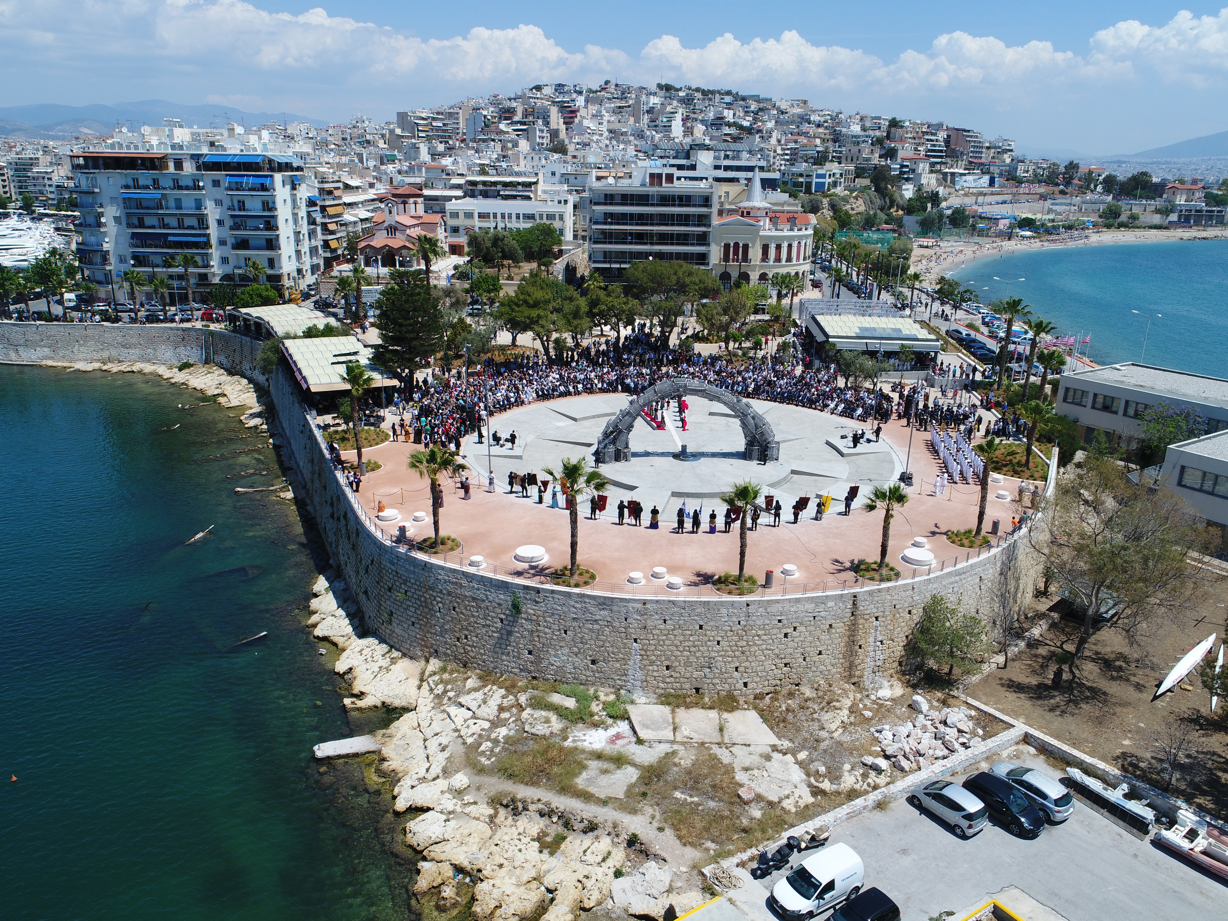 Τα συναισθήματα είναι ανάμεικτα. Από τη μία έχω τη χαρά να βρίσκομαι στην πανέμορφη, ιστορική πλατεία Αλεξάνδρας με την απέραντη θέα κοιτάζοντας το γαλάζιο και τον ορίζοντα, μια πλατεία επτά στρεμμάτων, χτισμένη κοντά στα αρχαία τείχη του Πειραιά, την οποία φτιάξαμε από την αρχή και εγκαινιάζουμε σήμερα. Μια πραγματική όαση που θα χαίρονται καθημερινά οι Πειραιώτες.