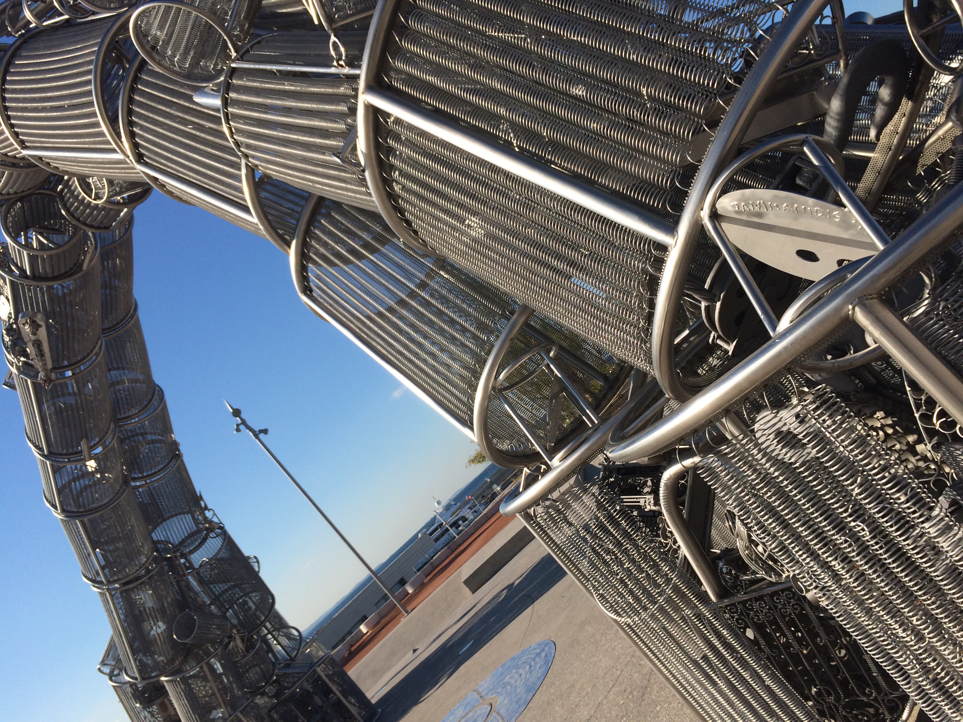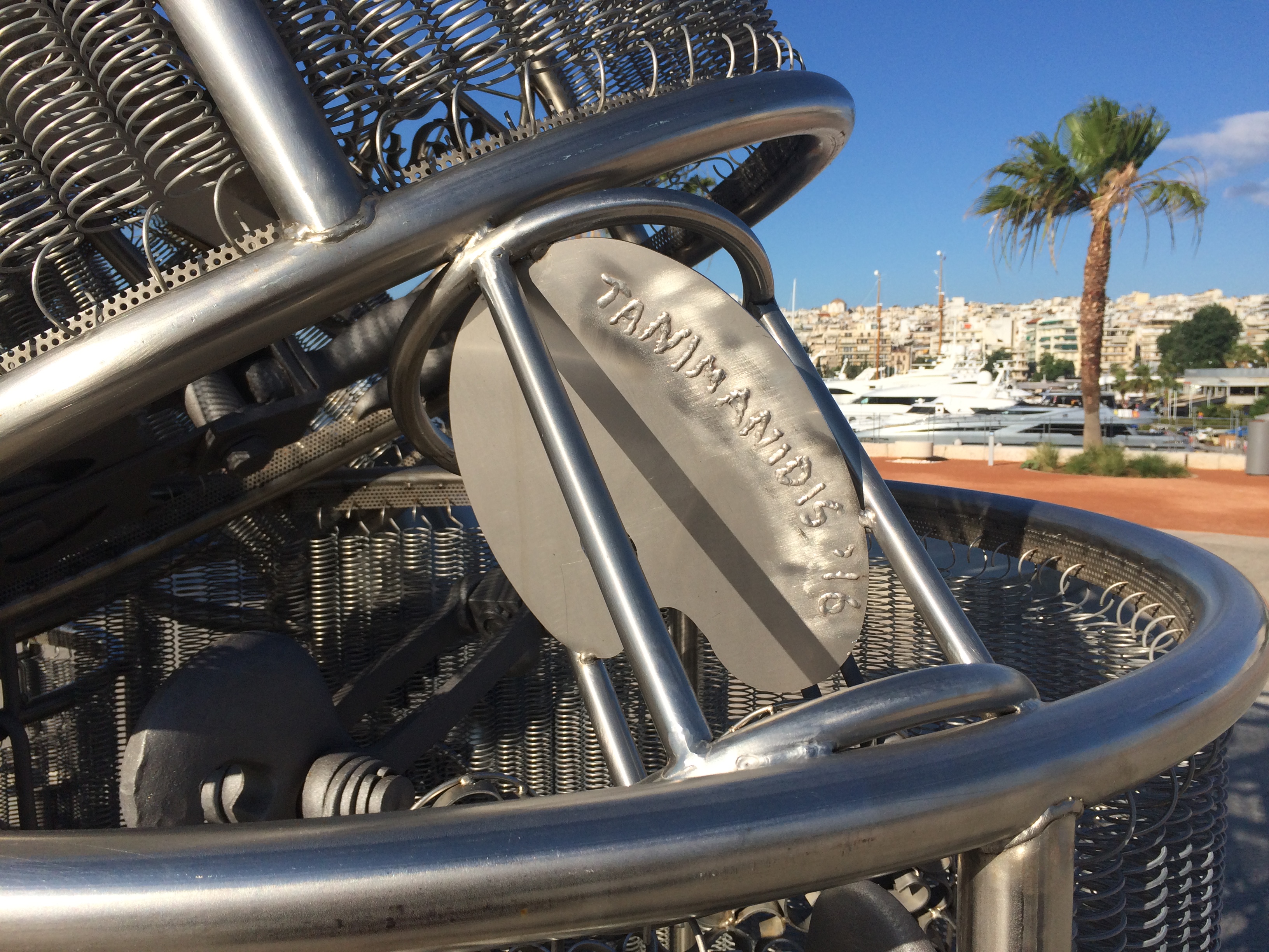 Από αυτό το σχήμα κι από αυτά τα “κομμάτια” που άφησαν πίσω τους – τα “κομμάτια” που έφεραν εδώ – έγινε το έργο. Εξωτερικά είναι αυτό το θαλασσοδιάβατο κύμα και εσωτερικά είναι το πέταγμα που κάνει ένα προσφυγοπούλι, φέρνοντας στη μνήμη τα “κομμάτια” που αφήνει πίσω, μη γυρνώντας πίσω να τα κοιτάξει, χάνοντας το παιδί του στη διαδρομή και φτάνοντας με μισό φτερό για να aαναγεννηθεί ξανά και να αναστηθεί. Η λέξη γενοκτονία είναι μια λέξη μικρής συχνότητας και το πρωτόλογο αυτής της λέξης πρέπει να το ξαναβάλουμε στη ζωή μας για να έχουμε το καντήλι της μνήμης μας ανοικτό.